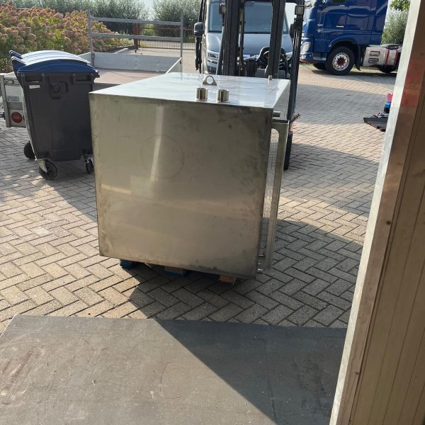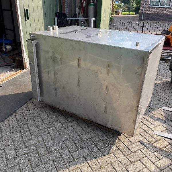 Voor aan boord van een binnen vaart schip deze 1000 liter rvs tank gemaakt. In deze tank word de adblue opgeslagen voor de motoren van het schip. Op deze tank hebben een schaal verdeling gemaakt voor het peilglas om te kunnen zien hoeveel liter er aan boord is en een aantal draad sokken om de nodige aansluitingen te kunnen realiseren voor de aansluiting op de motoren.