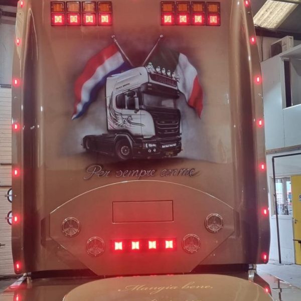 Voor deze klant hebben wij een supper dikke opbouw voor zijn vracht wagen mogen leveren. We hebben al het plaat materiaal op maat gemaakt na wens van de klant. We hebben hier gebruik gemaakt van de materialen rvs en aluminimum om gewicht te besparen. Tijdens het bouwen hebben we zoveel als kan alles 3d uitgetekend en laten snijden en zetten. We hebben kleine details verwerkt in de bouw na wensen van de klant waar onder tankkleppen in de vlonder extra verlichting onder de auto daarin hebben we voorzingen getroffen om de lampen goed te kunnen monteren.