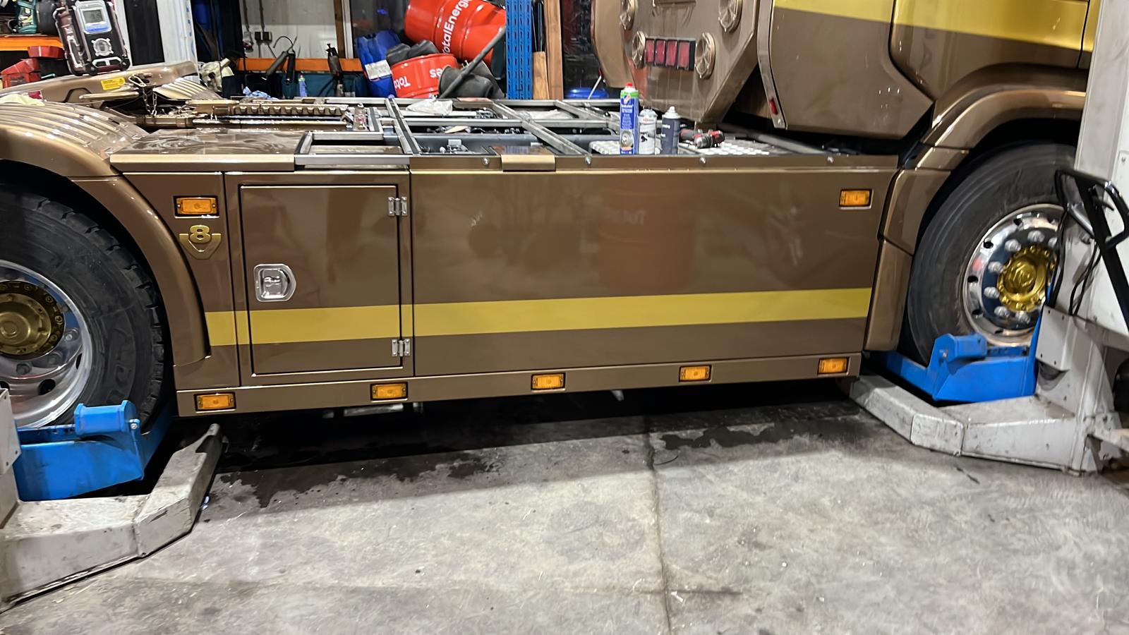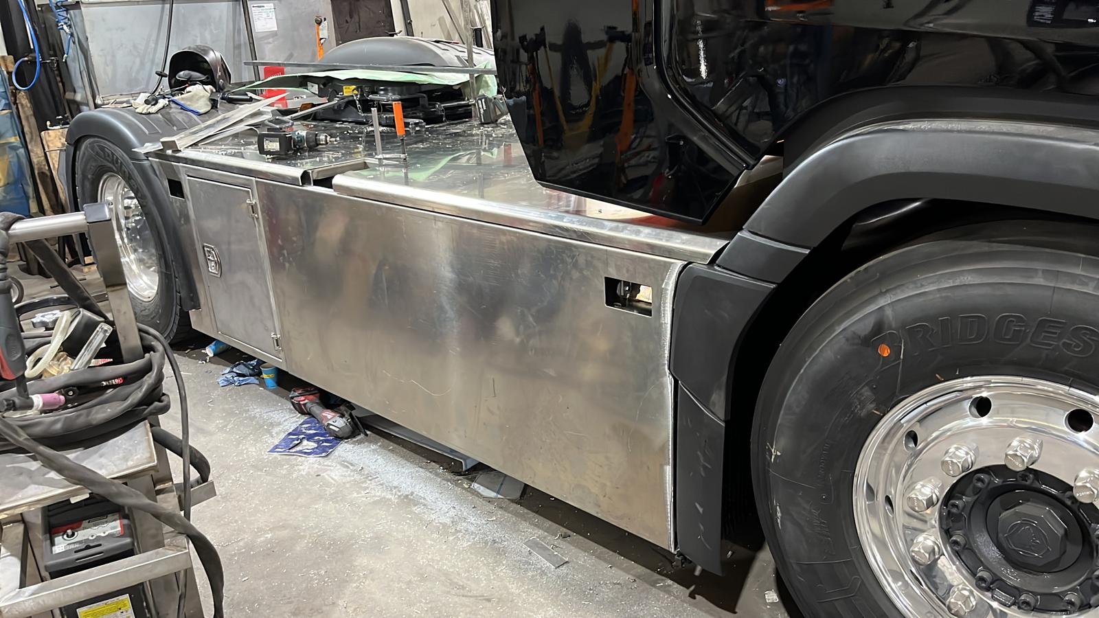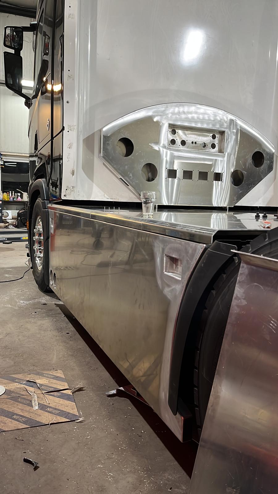 Voor deze klant hebben wij een supper dikke opbouw voor zijn vracht wagen mogen leveren. We hebben al het plaat materiaal op maat gemaakt na wens van de klant. We hebben hier gebruik gemaakt van de materialen rvs en aluminimum om gewicht te besparen. Tijdens het bouwen hebben we zoveel als kan alles 3d uitgetekend en laten snijden en zetten. We hebben kleine details verwerkt in de bouw na wensen van de klant waar onder tankkleppen in de vlonder extra verlichting onder de auto daarin hebben we voorzingen getroffen om de lampen goed te kunnen monteren.